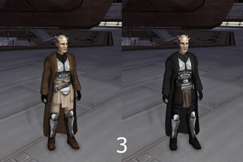 View File Bao Dur - Jedi Robe Reskin [ORIGINAL MOD NEEDED] 3 Variants for the BaoDur Jedi robes. Instalation: 1. Install "Bao-Dur Wears Jedi Robes" by Shem 2. Choose one of the 3 reskins and replace them in the override folder. Acknowledgements: Shem - For the original mod Kaidon Jorn - For the new textures Submitter Kirin Submitted 12/26/2025 Category Mods TSLRCM Compatible Yes