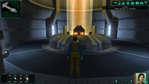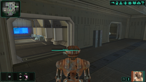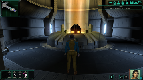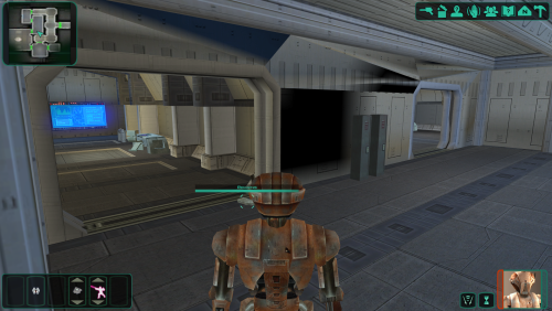 I'm working on fixing/updating a few areas with lighting issues. This first one is the Peragus force cage room where encounter Atton. The room is way too bright so I reworked the light sources and rebaked the lightmaps, using blender.