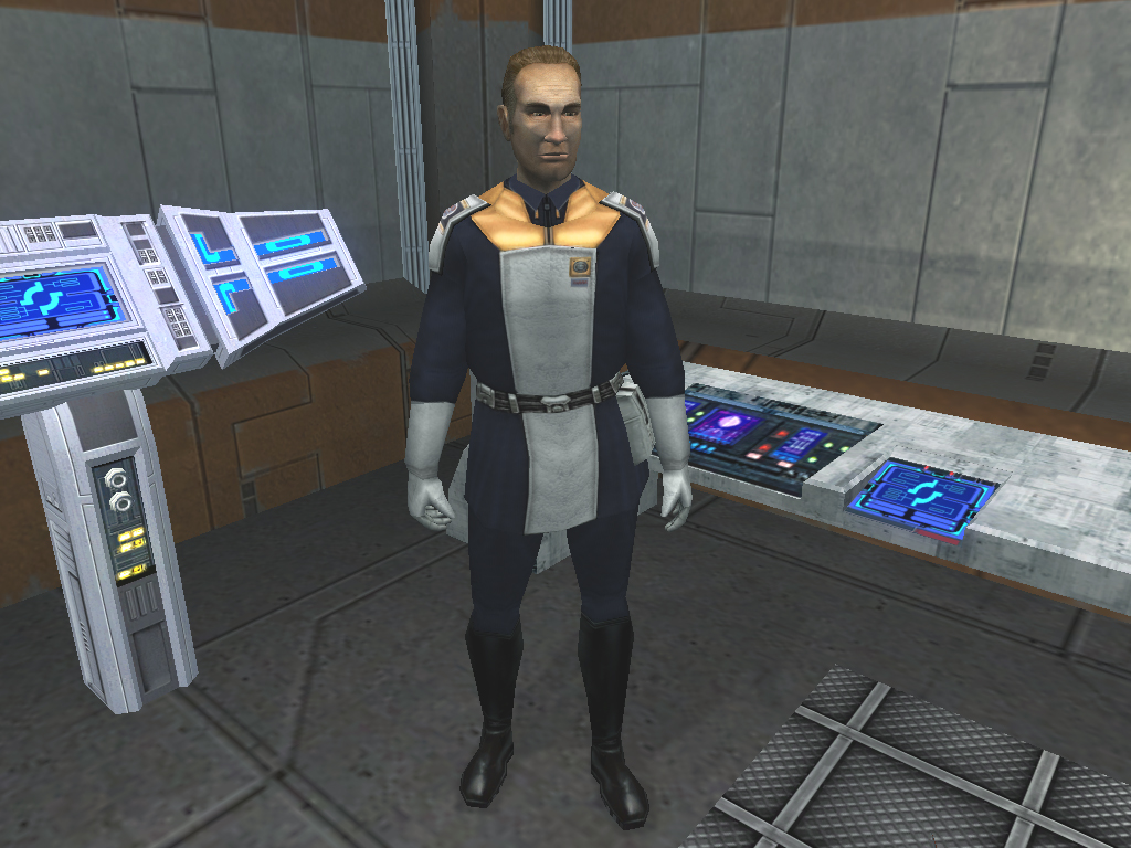 Another angle of the Grenn reskin I was working on. I really like the sheer strangeness of the Republic uniform, and I tried to retain it while making the TSF look like an actual Citadel Station police force rather than a palette swapped Republic soldier.