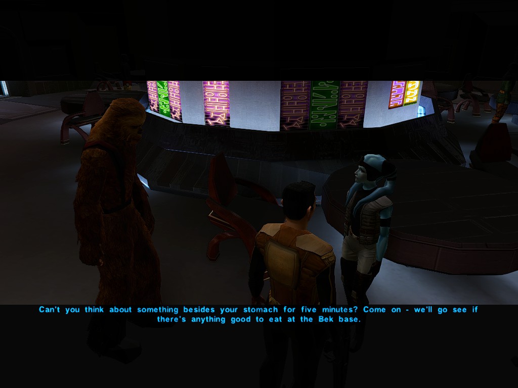 Showing off Sith Holocron's awesome cantina sign textures while trying to get a shot of Mission in rimlight.