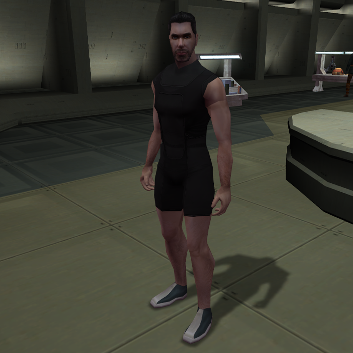 Decided to use the TSL underwear, since I like it a little better. Changed the colour of the cloth and tweaked the skin tone to better match the head and did a little UV tweaking, as the bottoms of the feet were badly misaligned. The small, medium and large sized underwear models all work fine, so just portraits left to make and that'll be that.