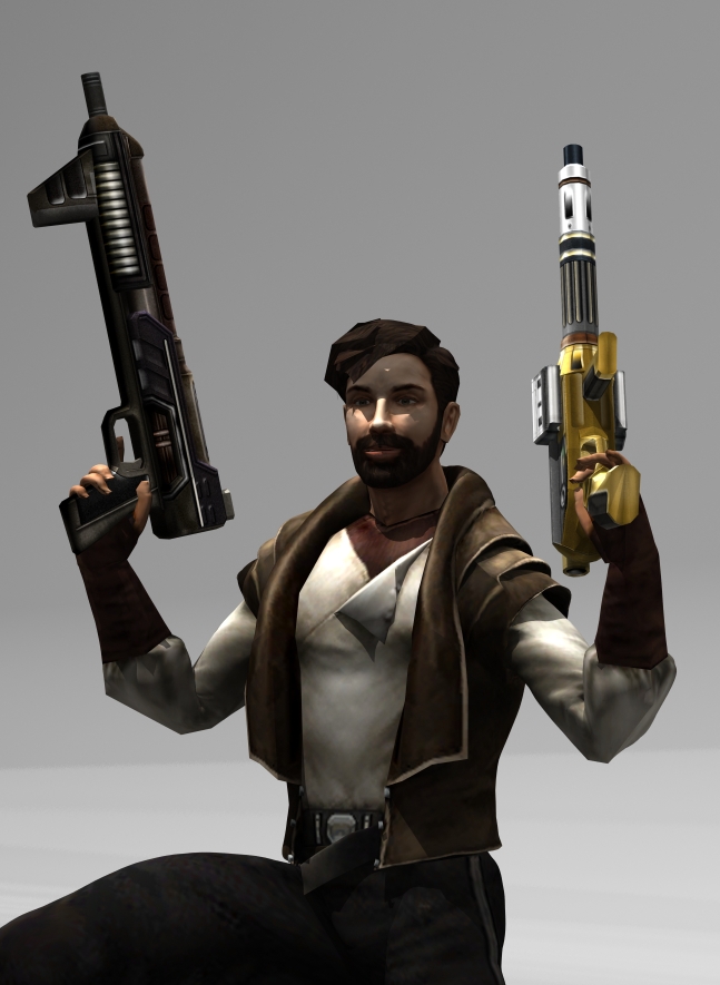 I found this old 3Ds Max file where I had Atton take a tough guy pose, showing of two guns.