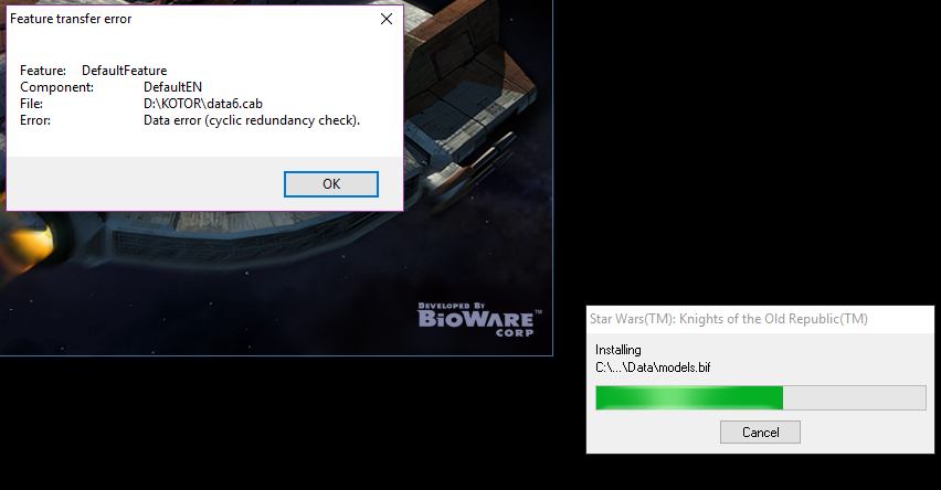 KotOR installer crash