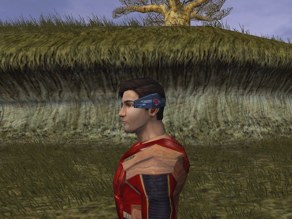 Atton texture experiment from the side. The stubble was added because Atton's in his mid 20s-30s, and I feel he would be unlikely to have shaved while he was interred on Peragus. (Plus it adds character)