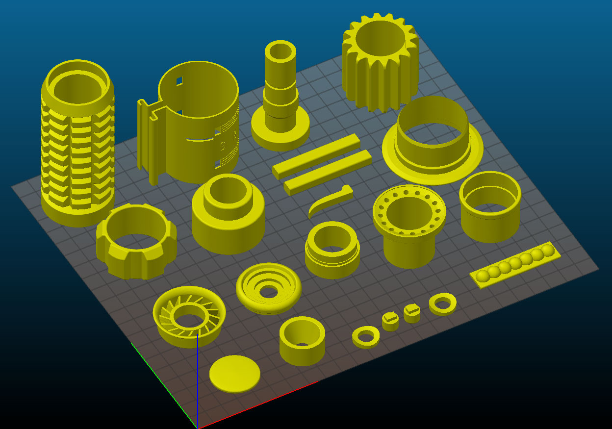 A quick loading of the Obi-Wan ANH saber individual components in Slic3r to check for any problems with the STLs. Actual printing will mostly be done a single part at a time, aside from very small pieces.